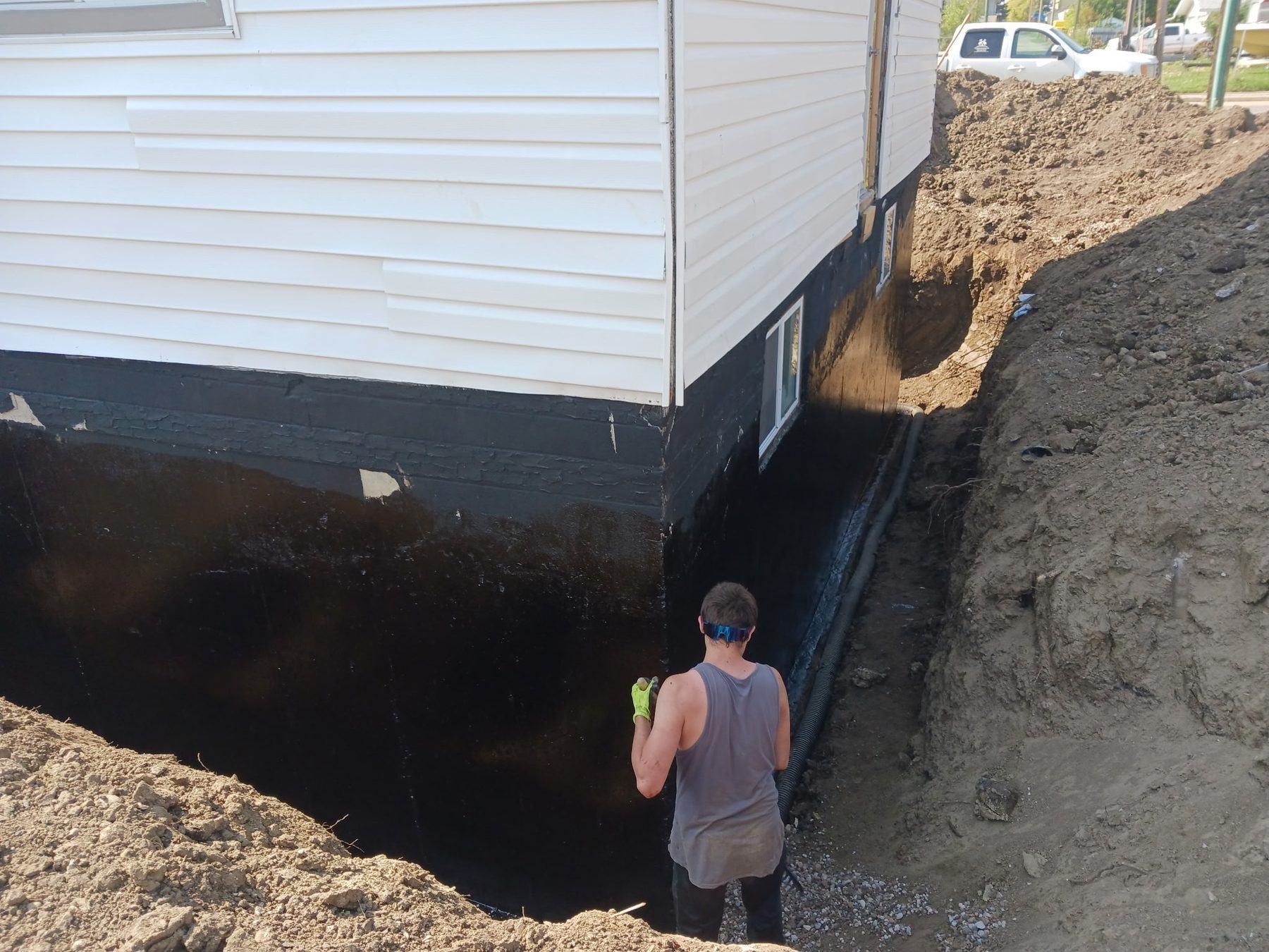 We excavate down to the footing, properly clean and prepare the foundation wall, repair cracks and problem areas, then apply a professional waterproof system designed to keep water out.